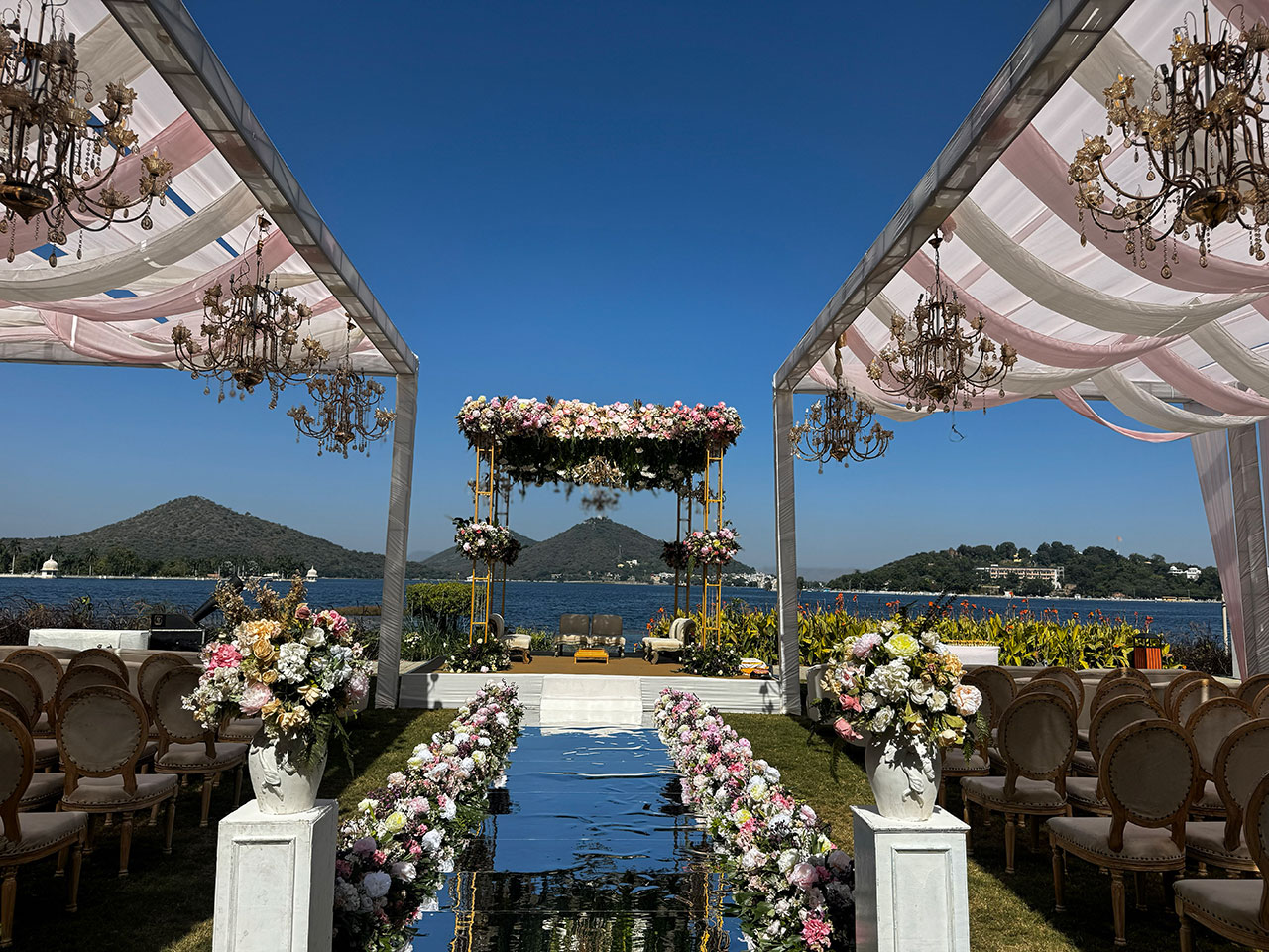 Located in the heart of Udaipur, Hotel Lakend is a 5-star luxury resort set on the banks of the serene Lake Fatehsagar. With its blend of modern amenities and heritage charm, this venue captures the essence of a true destination wedding in Udaipur. The picturesque views, lush green lawns, and elegant indoor spaces make it ideal for hosting multi-day wedding celebrations.