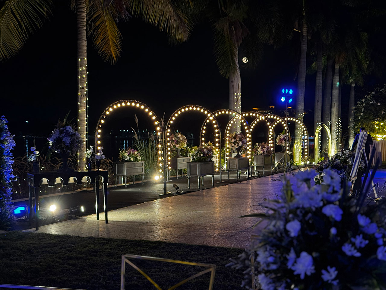 The hotel also offers poolside and terrace venues, ideal for pre-wedding functions or private parties. These spaces provide a romantic atmosphere, especially during evening events under the starlit sky.
